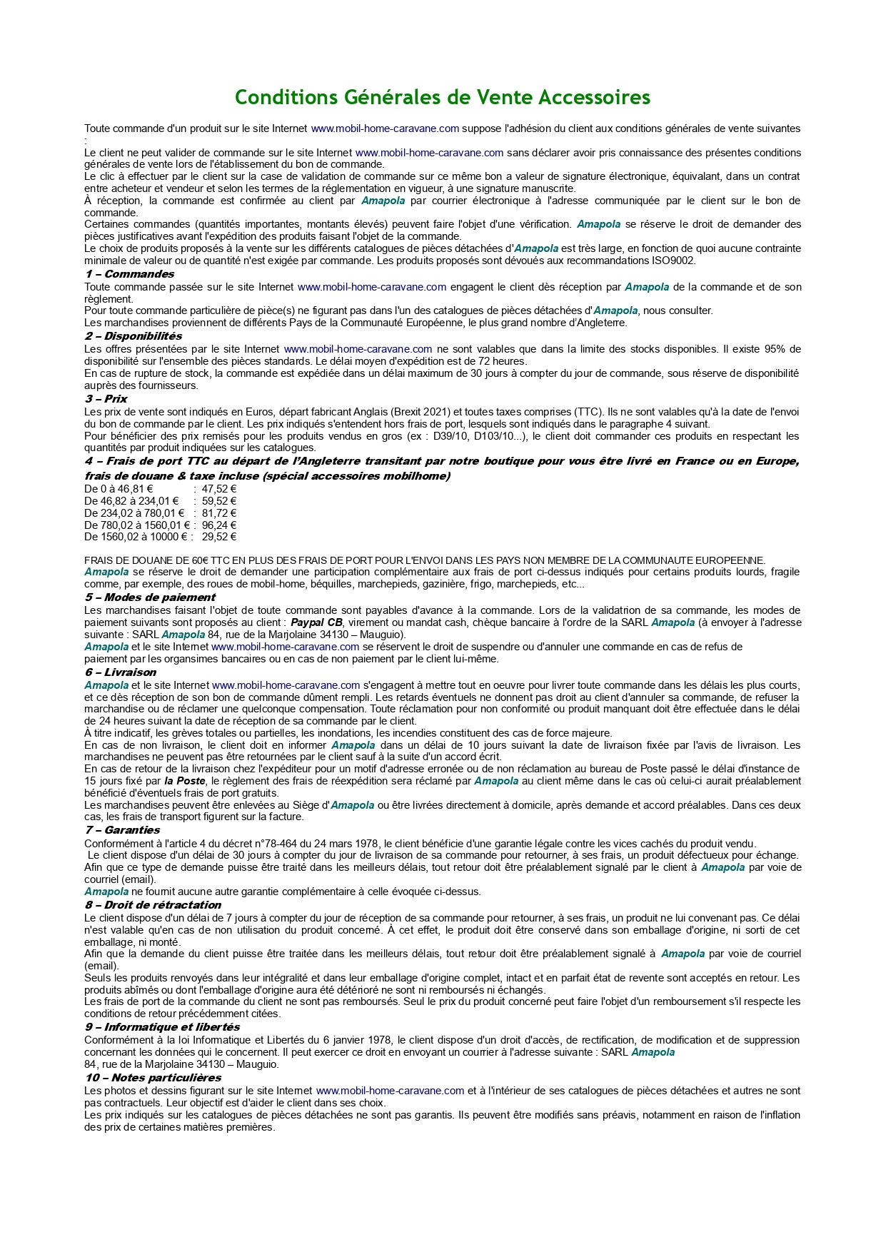 Conditions générales de vente accessoires